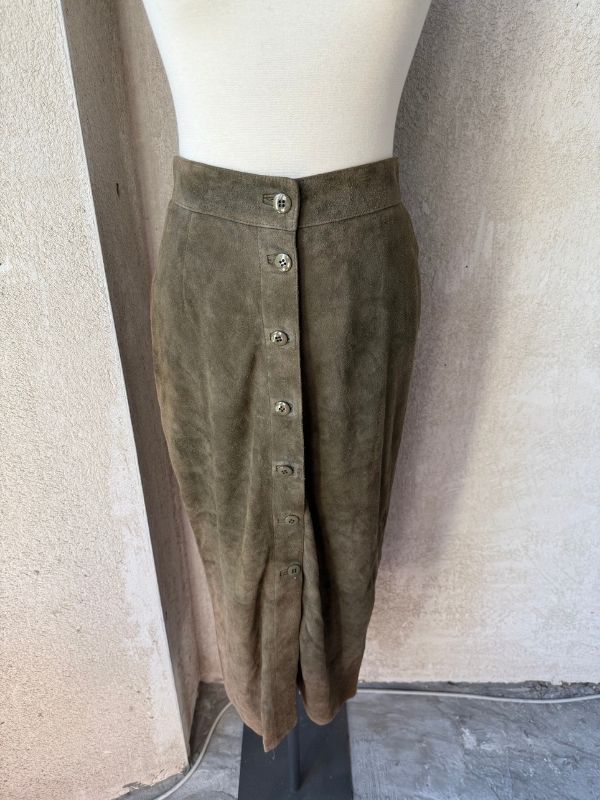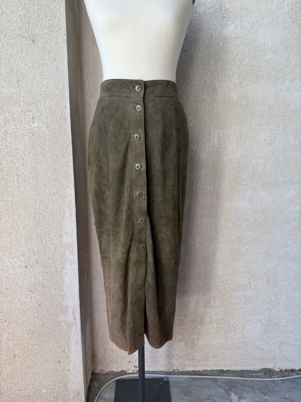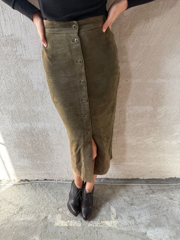 Gonna camoscio verde bottiglia