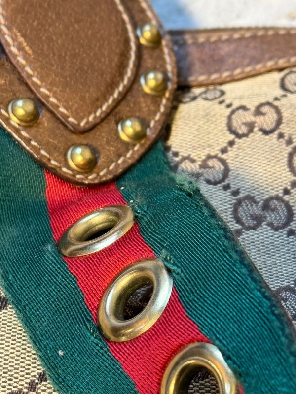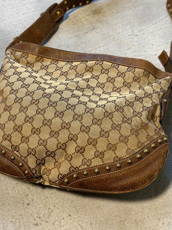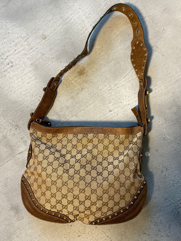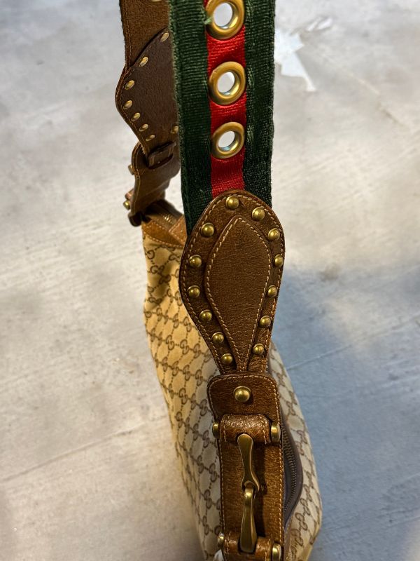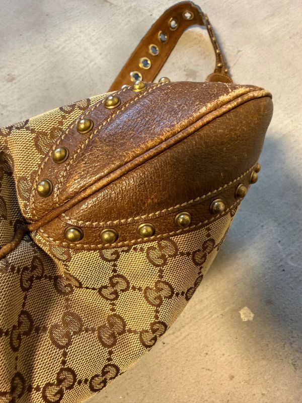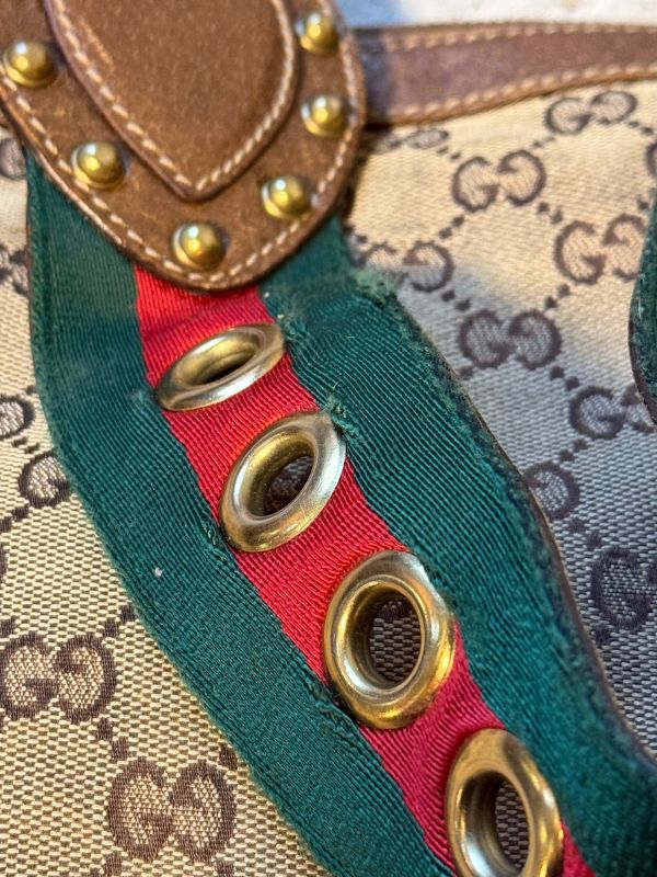 Gucci tote bag Pelham in tela marrone con borchie