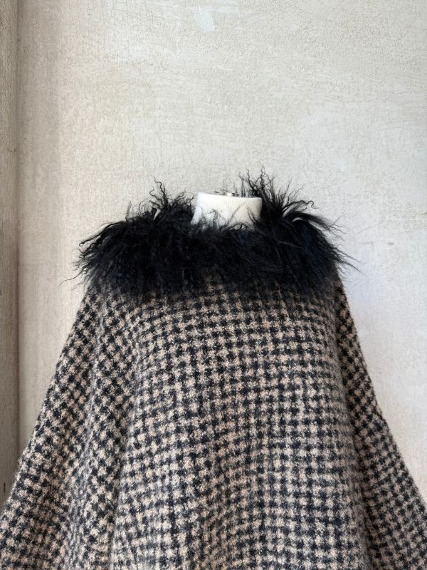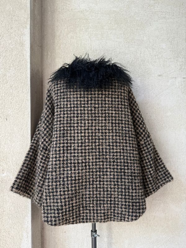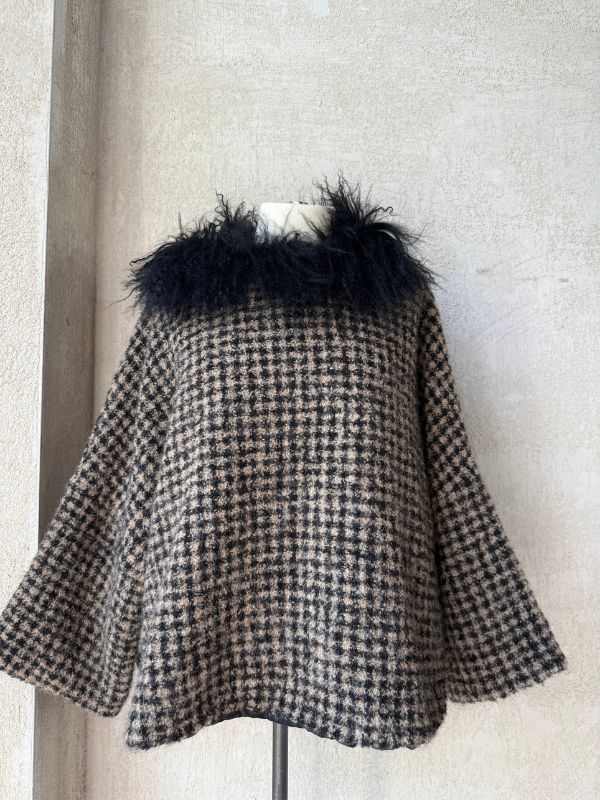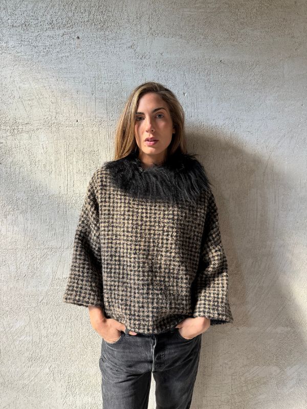 Composizione: 28% alpaca, 28% mohair, 24% lana vergine, 20% poliammide; collo 100% agnello