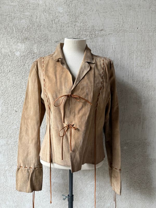 Giacca in camoscio con chiusure con lacci